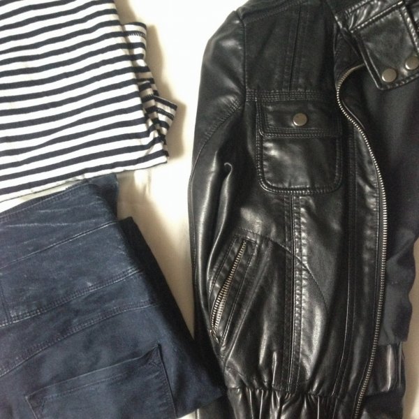 Éljen a bőrdzseki és csíkos felső kombó szombaton!
